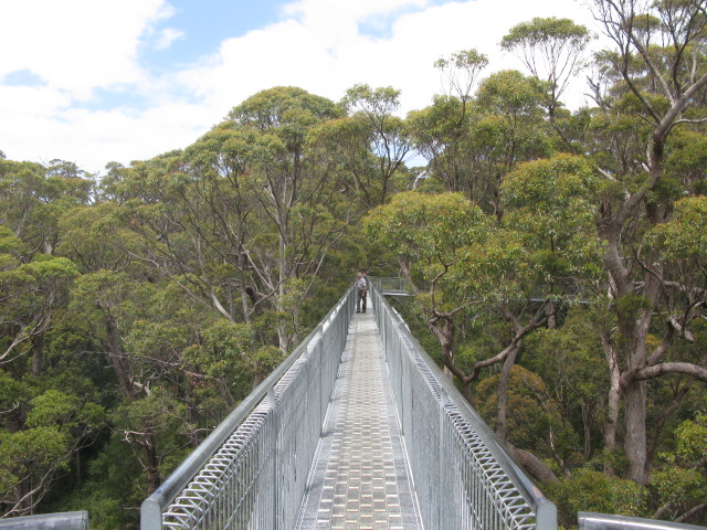 A few miles east of Walpole is the famous tree top walk - The Valley of the Giants. The Red Tingle trees are said to be the largest & the most ancient of the Eucalyptus tree family. The walk through the grove of gnarled veteran trees is rather haunting when its deserted & the 40m high canopy walk is a novel experience - looking down onto a woodland. Unfortunately, noisy visitors ensure that any interesting wildlife are kept well away.